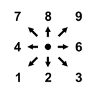int moveNum[10][2] = {{0, 0}, {1, -1}, {1, 0}, {1, 1}, {0, -1}, {0, 0}, {0, 1}, {-1, -1}, {-1, 0}, {-1, 1}};